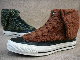 Now, imagine the beloved Jack Purcells in corduroy, leather, suede, nubuck, quilting, wool, vinyl, jacquard, velvet, velcro, denim, flannel, all-black, platform, mid-top, shin-hi, saddle shoe, bowling shoe, golf-shoe, slip-ons, rain boots and so on. That just touches the surface of some of the crazy Converse I saw in Japan recently.
